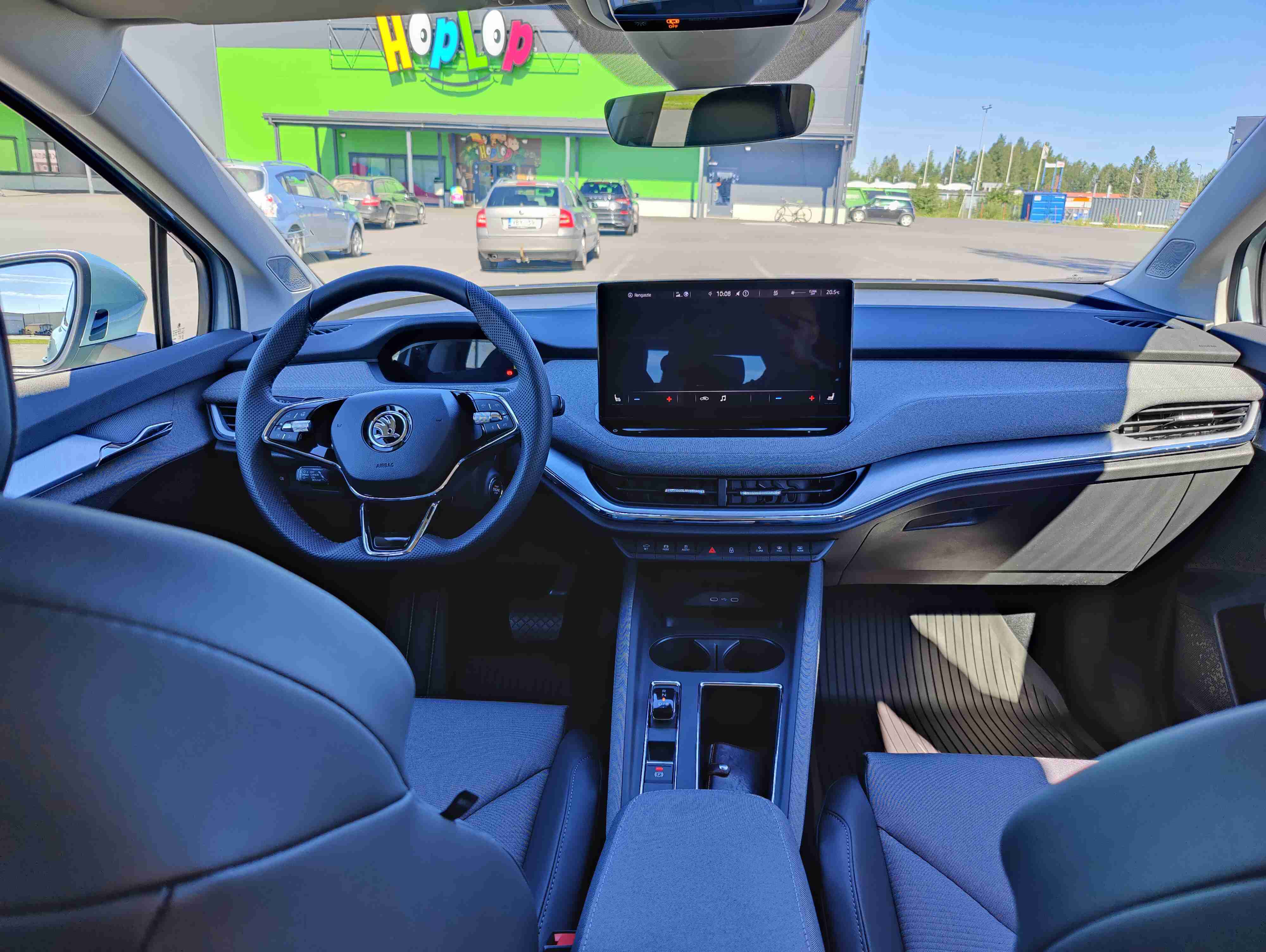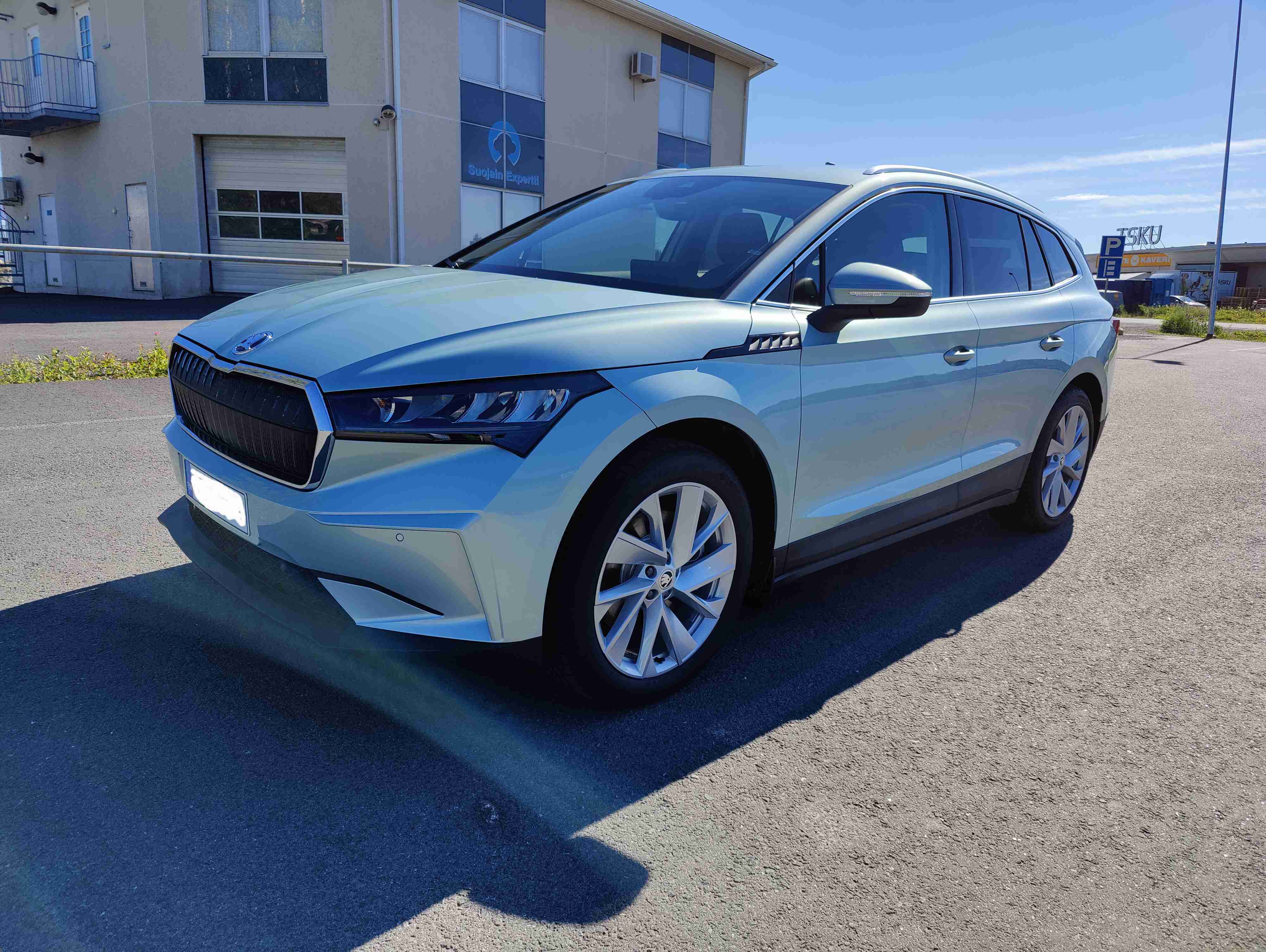 No kooltaan tämä on tosiaan samaa kaliiberia Kodiaqin kanssa. Jos katsoo pelkkää auton pituutta numeroiden valossa, se ei kerroa kaikkea, koska sähkövatkaimen nokka on lyhyempi kuin polttomoottoriautoissa. Sisätiloiltaan tuossa on verraten hyvät tilat.