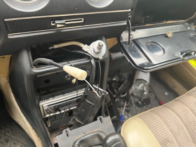 Purin keskikonsolia ja hansikaslokeron. Irroittelin lämmityslaitteen vesihanalle menevät vaijerit, koska ne eivät toimineet oikein. Kuskin puolella oli vaijerin kuori irronnut muovitötsistä. Sen liimasin kiinni. Apparin puolella helminauha oli katkennut säätimen sisällä. Tilasin apparin puolelle koko säätimen purkuosana Saksasta, hintaa tuli 40 eur rahteineen.