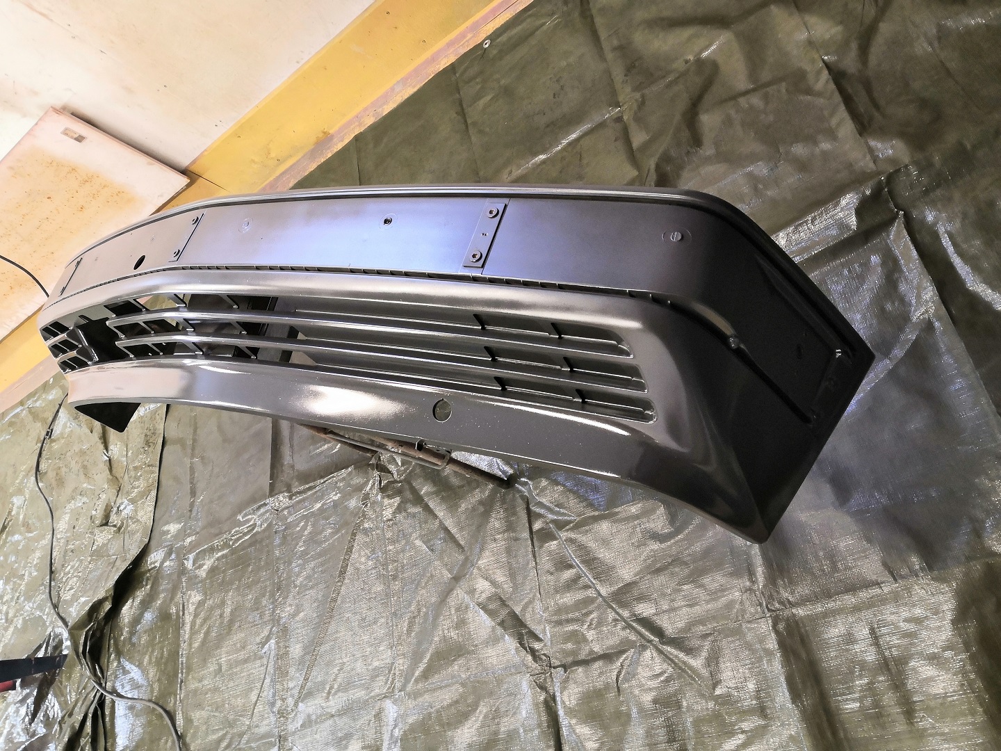 Otin törmäyslistan pois ja tein tarvittavat valmistelut myös takapuskurille. Uudet maalit pintaan, samoin etupuskurin hinausluukun maalasin uudelleen.