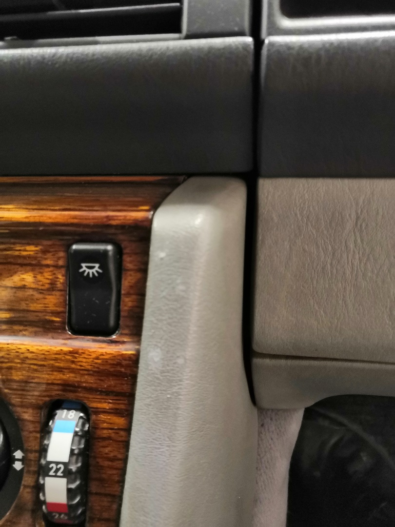 Sisustan virheitä yritin korjata ja piilotella. Kojelaudassa on ollut muutama halkeama keskellä kojelautaa tuulilasin lähellä ja vänkärin puolen etukaiuttimen paikkeilla. Lisäksi keskikonsoliin on joskus porattu jotain, jokin teline tms.??