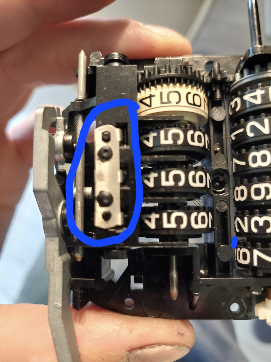 Purin aluksi varaosamittarin josta pääsi tutkailemaan miten mekanismi toimii. Sitten itse potilaan kimppuun ja siellä oli jokin hieman pois paikaltaan kun 100m rulla ei pyörinyt. Lisäksi osa, jossa on trippimittarin välitysrattaat, oli hieman rikki. Siitä oli sellainen peltikampa irti, ja se mahdollisesti oli syyllinen tähän toimimattomuuteen. Vaihdoin ehjän osan varaosamittaristosta. Ainakin ensimmäiset 5km trippi näytti toimivan.