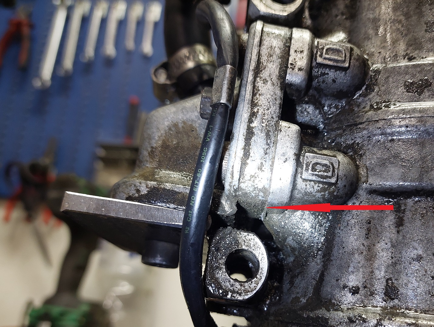Pahiten sotkussa oli vänkärin puoleinen koneen kylki ja sitä myöten myös vaihteiston kylki samalta puolelta. Väittäisin vuodon tulleen venttiilikopan takaosasta josta öljyä valunut sitten vauhtipyörän/vaihdelaatikon liitoksen päälle ja sieltä sitten levinnyt muualle. Kuskin puolella kone ja vaihdelaatikko olivat siistimmät. Pakkivalokytkimelle menevän liittimen johtojen suojus oli mennyt osittain rikki. Paikkasin sen.
