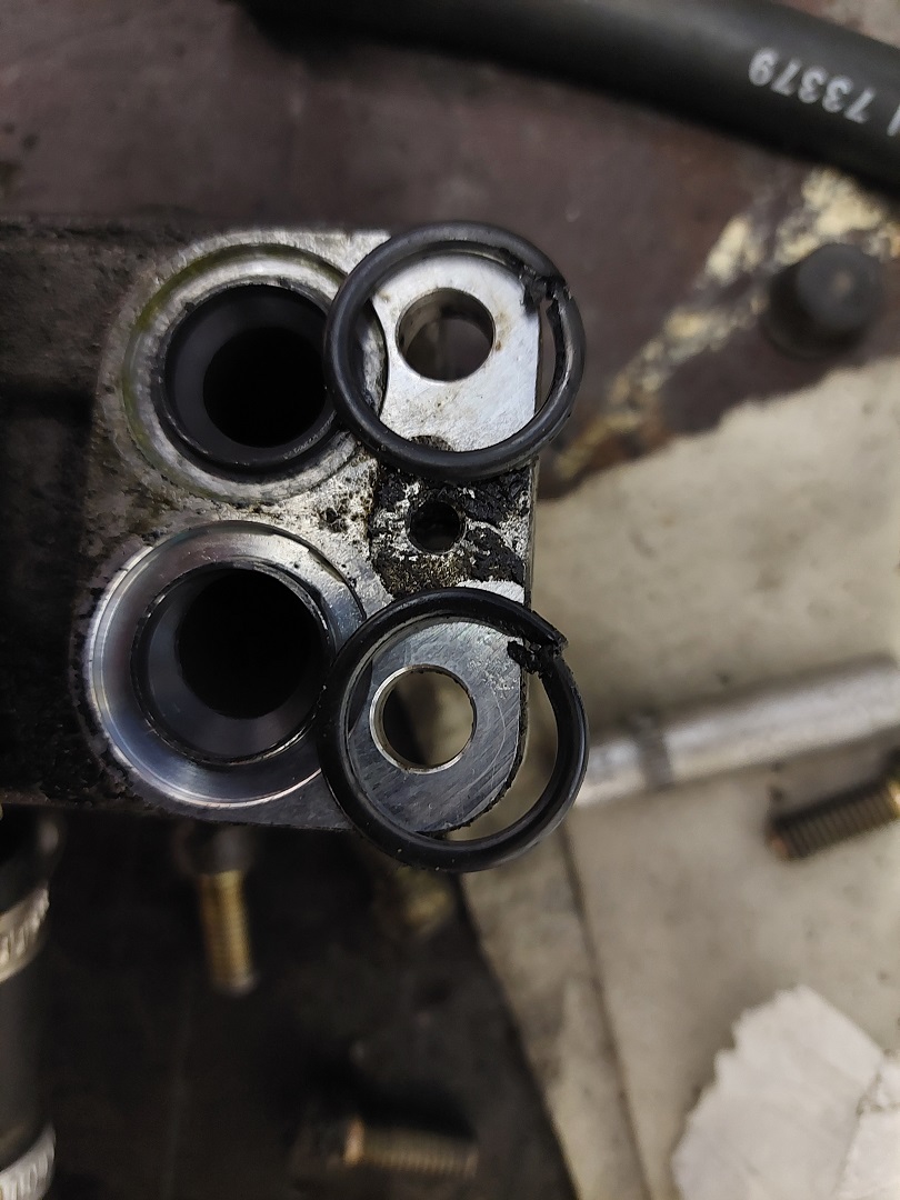 Laitoin O-renkaat paikalleen ja testasin tiiveyden uudelleen. Vuotoja ei enää löytynyt. Perstuntumalla O-renkaat olisivat saaneet olla pari kymppiä paksummat, mutta mennään nyt näillä... Kasasin puretut osat kompressoriin takaisin ja pistin laitoksen takaisin paikalleen autoon. Huuhtelin ja täytin kompuran PAO68 öljyllä, sen pitäisi olla sopiva öljy ajatellen vanhaa ja tulevaa kylmäainetta.