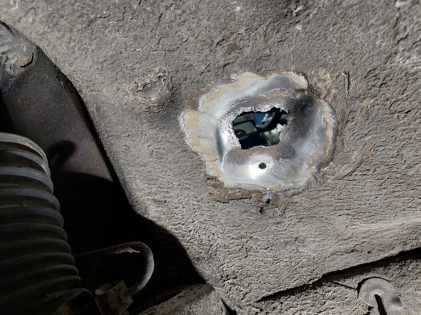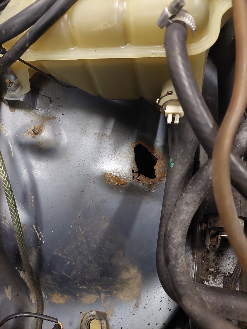 Jotain pieniä putsailuja tein ja huomasin, että lasinpesunestesäiliön kiinitysruuvin alla on vähän tähtipölyä. Pölyn hälvettyä, jäljelle jäi vain reikä....