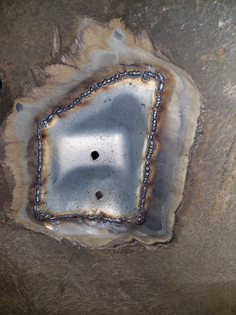 Alkuun hitsasin muutaman täpin konehuoneen puolelta, mutta umpeen sitten pyöränkotelon puolelta.