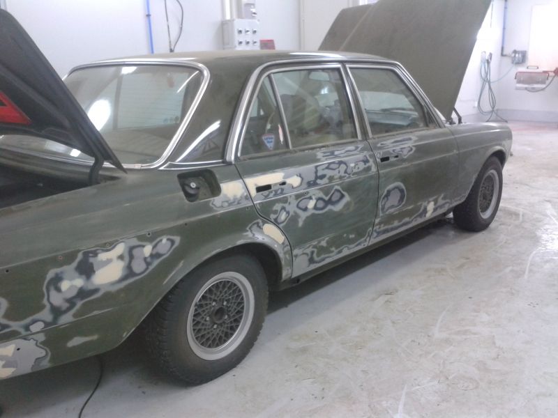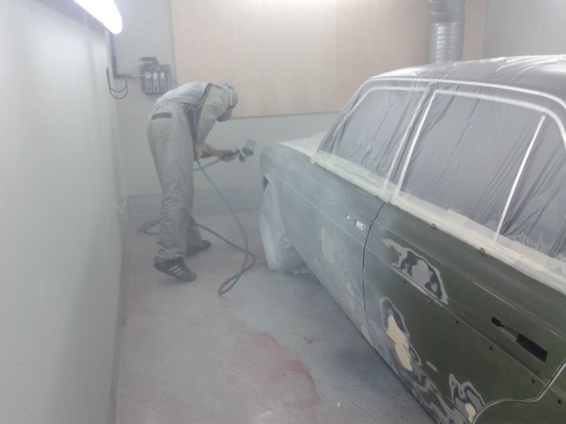 Ei tarvinu kuin kevyesti hioa hinkkavärit sileeksi ja kaveri suihkautti maalit päälle :D