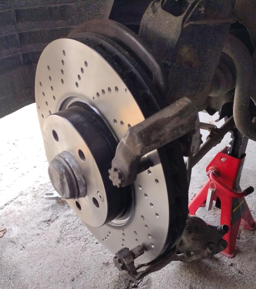 Tuli tehtyä jarruremontti Sisuun (w212) liukutapit oli lujassa.