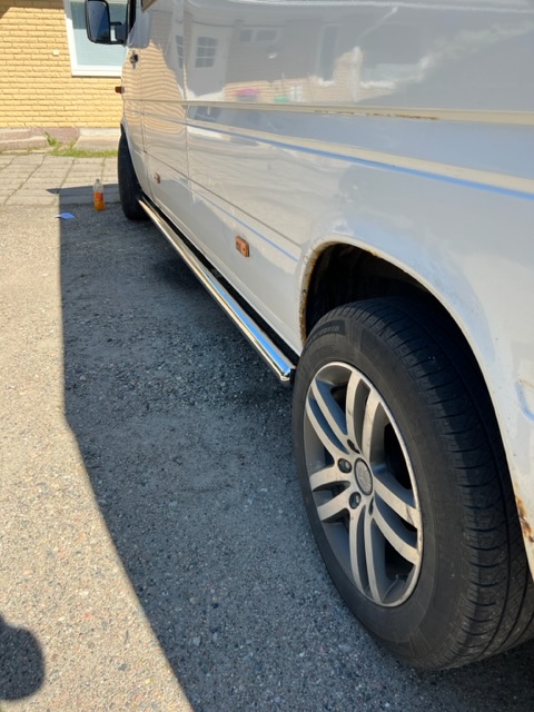 Tosiaan vissiin kadotettu nuoruus tai joku iski nyt, ensimmäinen sprintteri minkä oon omistusaikana pessy (toki yhden maalannut päin persettä..) mutta niin pitäis saada rautoja katolle ja taakse. Keulassa on tuo valoteline jo, kuljetuksessa näky olevan kylkiputket eli katolle eteen ja taakse tarvis valoraudan sekä taakse helman alle jos semmosia on jotku tehny. Jos ei löydy helpolla nii varmaan täytyy opetella TIG hommat sitte ite.
