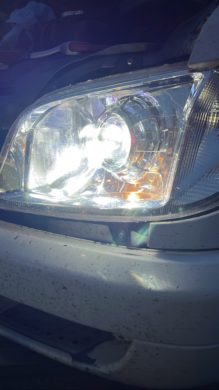 Nyt siellä on tosiaan pienemmät ja tehottomammat 2.5” bi-ledi projektorit, korkeussäätö toimii ja näkee kyllä näilläkin todella mukavasti, eikä häikäise suoralla tiellä. Toki nypyissä varmaan vilahtelee kun ei ole automaattista korkeudensäätöä.
