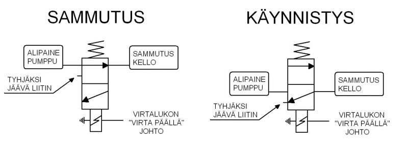 Oon asentanu kaukokäynnistyksen 200D:hen. Siitä pitää ottaa virtalukon pohjasta alipaineletkut kokonaan irti ja laittaa siihen väliin 3/2 pneumatiikka magneetiventtiili ja tehdä sammutuksesta kokonaan sähköohjattu. 3/2 venttiili sen takia, että alipaine pääsee pois sammutuskellolta, muuten moottori ...
