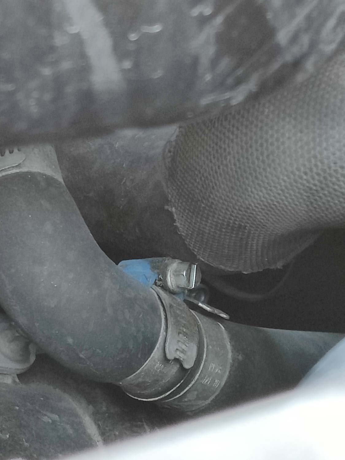 Ai niin, Motonetin mies huomasi, että letkunkiristin hankaa pahasti vesiletkua (kuva).