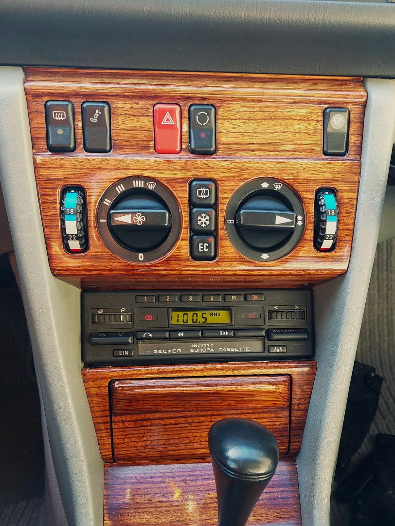 Nyt kun antennikin toimii, niin pitihän se tähän hommattu Becker Europa Cassette electronic (730) laittaa paikalleen. Tein kaiutin -ja virtaliittimistä ISO-liitin muunnoksen. ISO- liitin oli auton päässä valmiina, niin oli helppo homma kytkeä. Tässä paikalleen menneessä Beckerissä valojen ohjaus ei tulekaan auton päästä vaan soittimessa itsessään on valaistus. Soittimen liittimessä oli nastat vain maa, +12V ja virtalukolta +12V. Valaistuksen nasta puuttui.