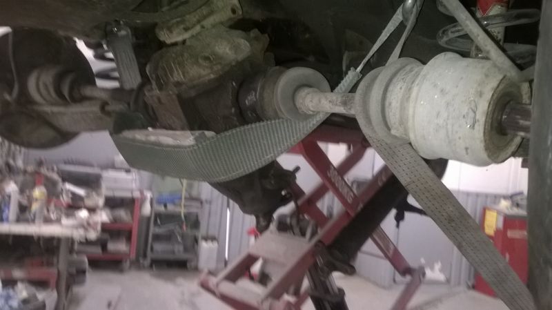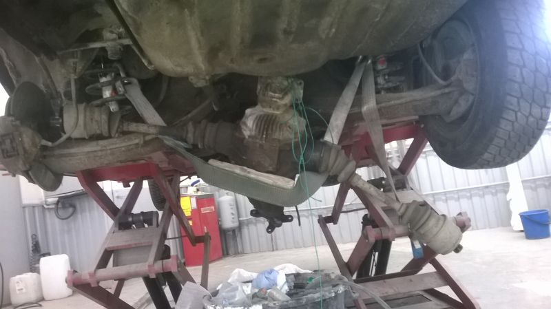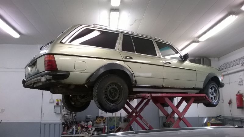 2) Pudotat koko takakelkan alas, pitää toivoo ettei mee puslien ruuvit poikki. Jos tähän päätyisin niin ostaisi valmiiksi uudet ruuvit kasausvaiheeseen. Perän vaihto onkin sitten helpohkoa ihan normityökaluilla kun takakelkka on pudotettu. Samalla kun koko perä tiputettu on tietty helppo todentaa sen kunto ja tehdä paljon muita remppoja.