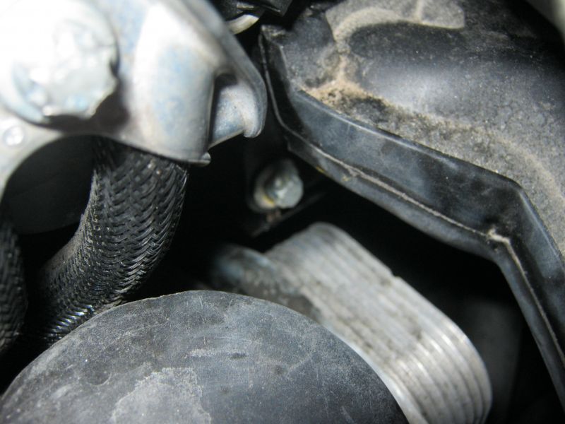 Vuotokohta sijaitsee siis menosuuntaan nähden moottorin vasemmalla puolella, imusarjan ja lohkon välissä olevassa (muovisessa?) pitkulaisessa palikassa.