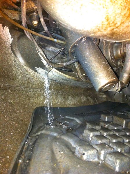 No nythän se ässä teki taas yllätyksenä ja pyytämättä kivan tempun näin kurakelien alla...laskee pesuvetensä vasemman ajovalopesurin kautta maahan, ja ihan mukavan reippaasti tuleekin (vuotaa jonnekkin puskurin ja sisälokarin taakse)